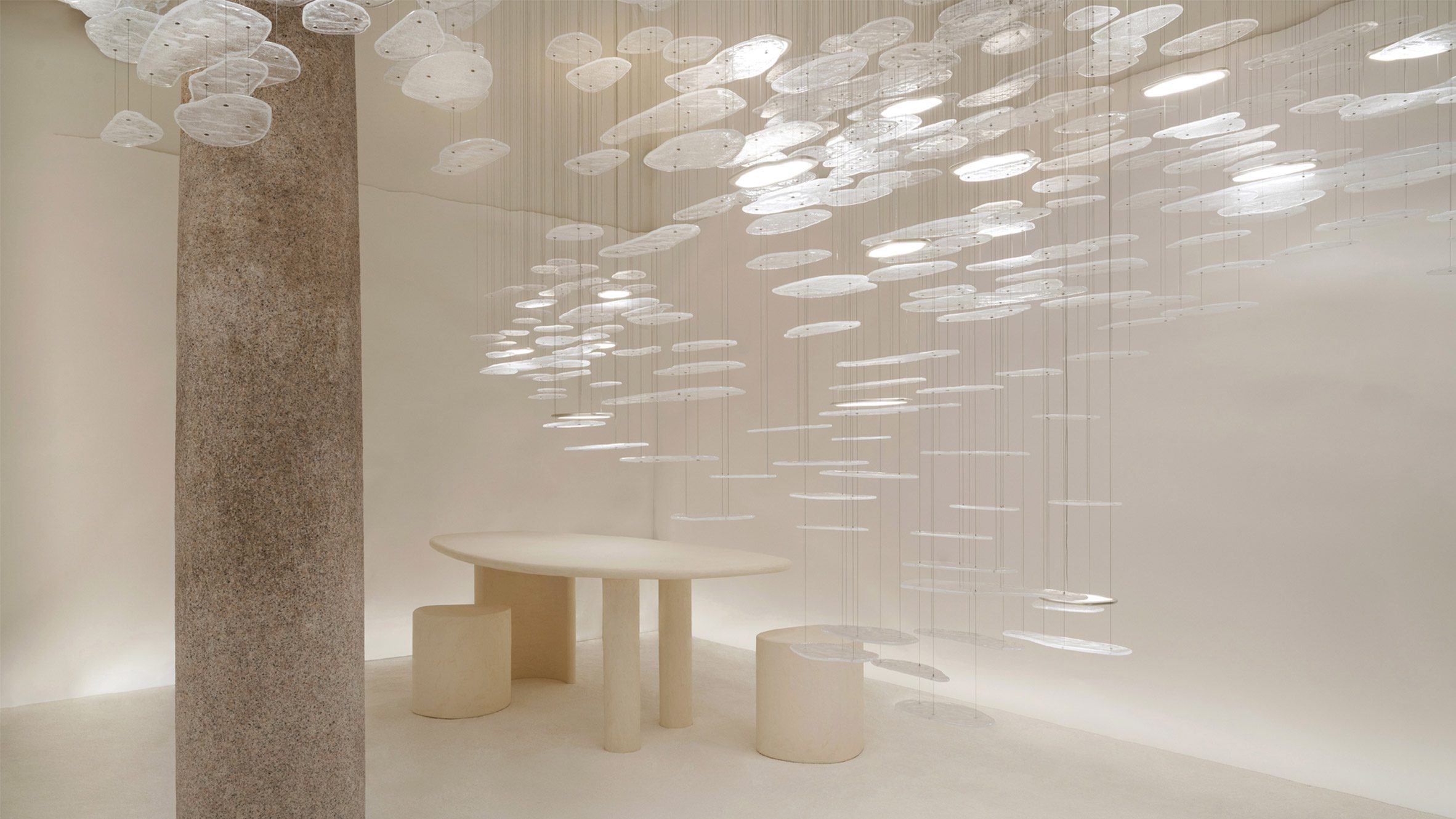 A: 我特別喜歡 Bruma Chandelier Dense 125。這件作品的靈感來自威尼斯潟湖上的霧氣,透過光在霧中折射、擴散所形成的朦朧感來轉化成燈具。它本身自帶光源,透過手工製作的玻璃層層漫射,不僅讓燈具本體呈現出柔和且富有層次的光感,同時也能提供桌面足夠且舒適的照明。它在藝術與功能之間取得了一個非常好的平衡。