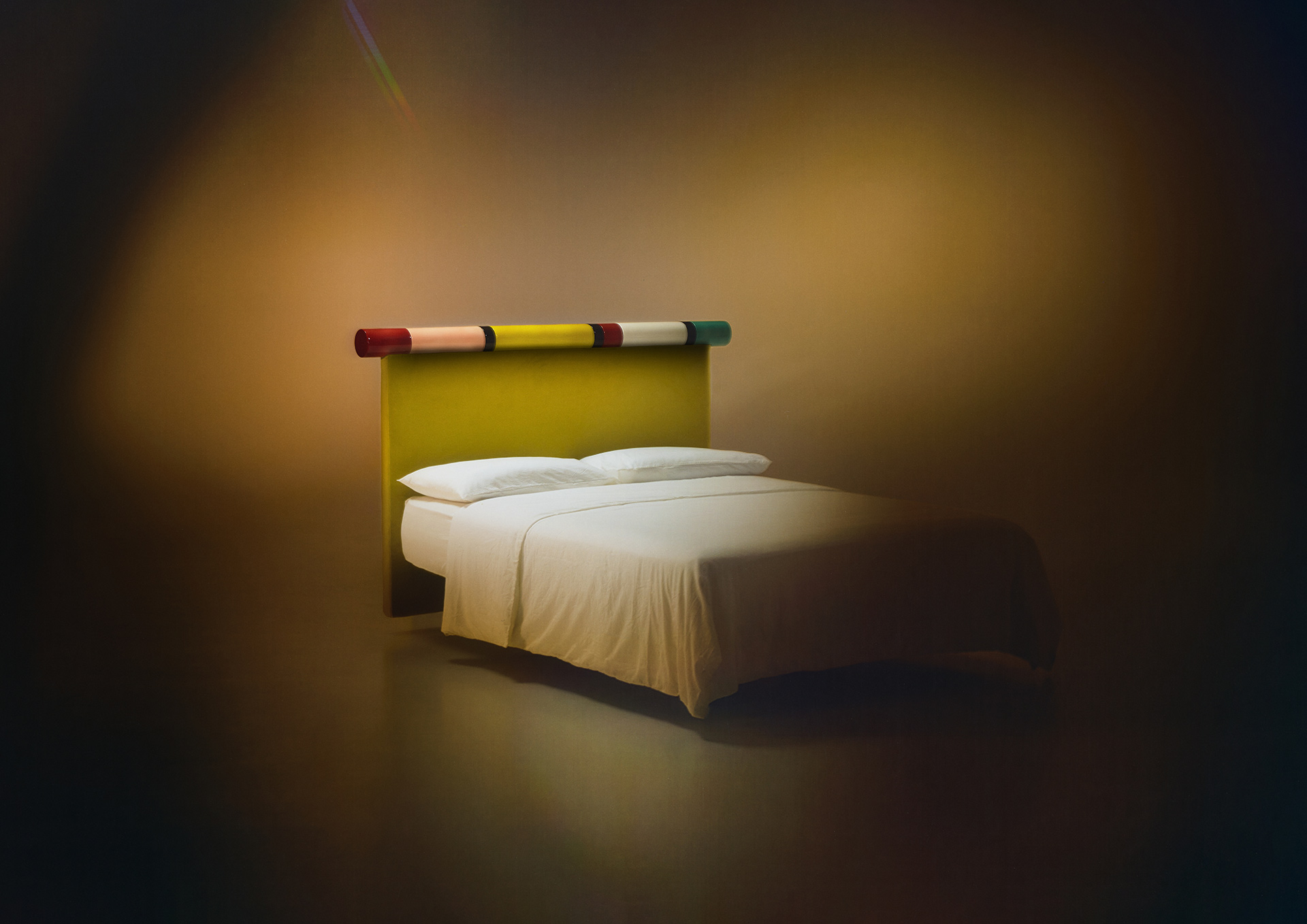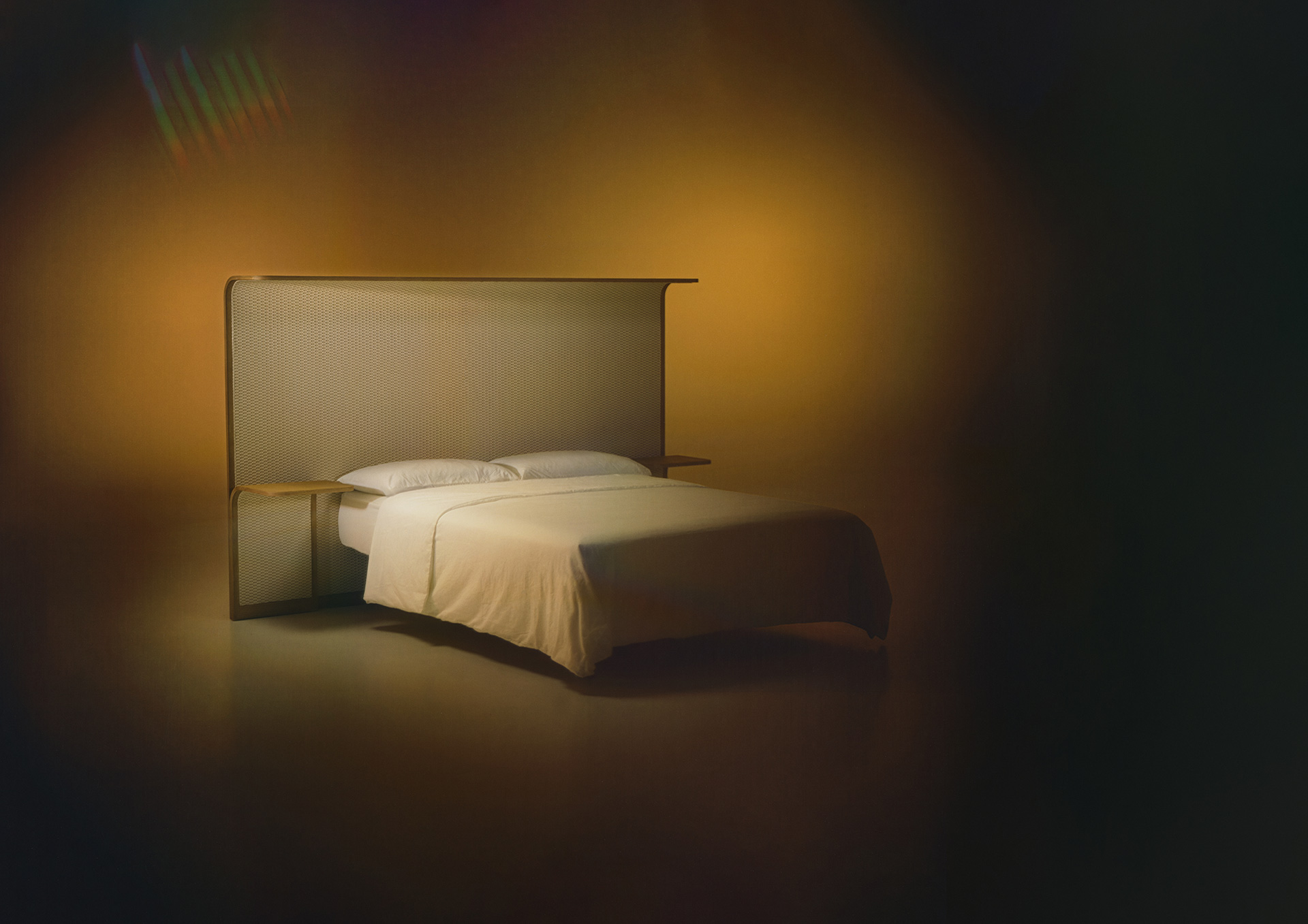 Sam Baron 設計的「Courtoisie床頭板」反思「床」作為一個庇護、親密和連結的空間。受到天蓬床和中世紀義大利傳統木床結構的啟發,Courtoisies 以大片高聳的弧形板,在臥室中定義了一個充滿包覆感的小世界。
