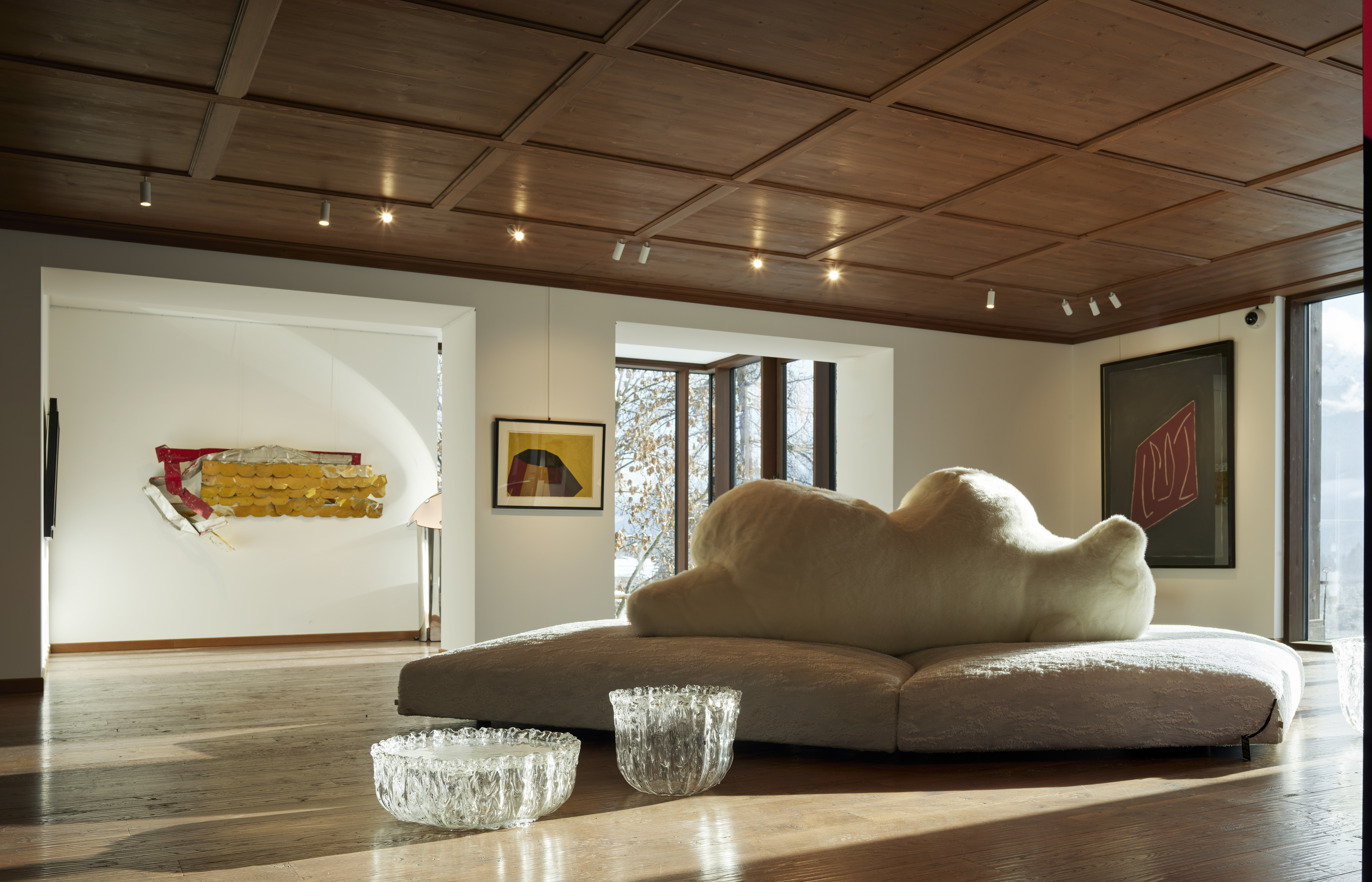 面對前身為纜車站的工業張力,Edra 以 Pack 北極熊沙發的有機造型對抗建築幾何感。這座如冰山般龐大柔軟的物件,成功平衡了結構冷硬,將場域違和轉化為感官緩衝的出口,成為與多洛米蒂山脈共生的視覺座標,在陳設中展現對 MUSA 靈感的深度實踐。