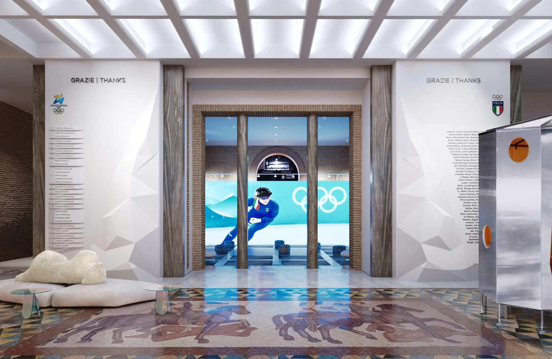 Casa Italia 是義大利奧委會(CONI)在每一屆的奧運會期間打造的 Hospitality House(招待館)。在 2026 米蘭 - 科爾蒂納冬季奧運期間,CONI 將這個過去四十年被稱為「運動員之家」的場所——那個承載獎牌、舉杯慶祝與合影記憶的神話性場域——轉化為更具意義的存在:一個開放的文化裝置,一份以建築、藝術、設計與飲食構成的宣言。在奧運運動賽事之外,引領觀眾體驗義大利的文化、藝術與人文底蘊的重點旅程。