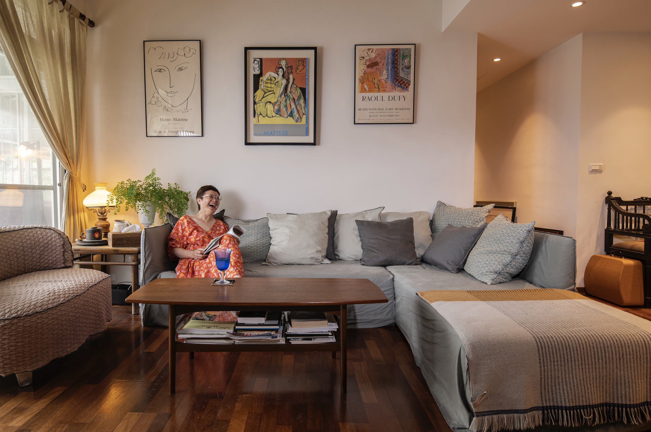 剛從南法普羅旺斯旅遊回來的她,餐桌上還堆滿她一路精挑細選、不辭辛勞扛回來的戰利品 --- 全都是能替家中增添生活情趣的杯盤、食材與器具。看著她對家中每個物件的講究、珍惜,不難感受到這位女主人對「家」最深的眷戀與驕傲。我不禁好奇,她會如何看待我們今天的討論主題「沙發」呢?